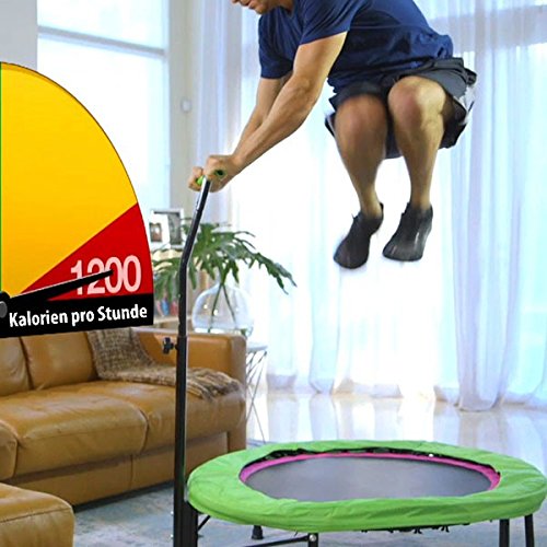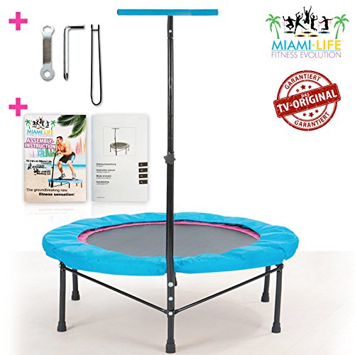 Hinzu kommt: 10 Minuten Trampolinspringen können so effektiv sein wie 30 Minuten Jogging, und in einer Stunde Training können Sie bis zu 1.200 Kalorien verbrennen. Profitieren Sie auch jetzt von den großartigen Trainingseffekten – mit Miami Life Fitness Evolution! Durch seine spezielle, stabile Konstruktion mit Haltestange und Gummiseil-Federungssystem eignet es sich ideal für Ihr ganz persönliches Fitness-Training zu Hause! Mit rutschfestem Sprungtuch.